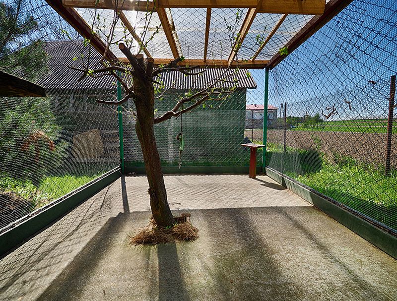 Koty mają do dyspozycji cały domek, z którego jest bezpośrednie wyjście na zewnątrz i gdzie kociaki przesiadują do woli. Woliera jest zadaszona co daje możliwość korzystania z niej nawet na niepogodę.